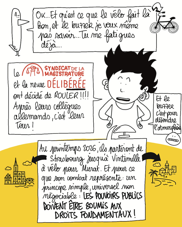 Le Syndicat de la magistrature et la revue Délibérée organisent avec le soutien de MEDEL un projet de parcours à vélo constitué d’une trentaine d’étapes quotidiennes, pendant tout le mois d’avril 2026 entre Strasbourg et Vintimille, dans la continuité de l’action menée entre Bonn et Strasbourg par des juges allemands.