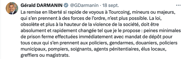 Qu’un ministre de la Justice se permette de remettre en cause le traitement judiciaire d’une procédure encore en cours est une transgression inacceptable à ces principes. Cette dérive se banalise gravement depuis l’arrivée de Gérald Darmanin au ministère de la Justice.